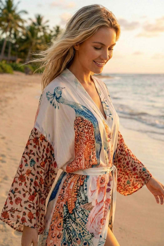 Notre collection explore toutes les facettes du kimono satin. Le kimono long femme s’impose comme une robe élégante pour les soirées, tandis que le kimono court devient un cardigan léger parfait pour le quotidien. Le kimono de plage en satin séduit par son côté aérien, idéal sur un maillot de bain. D’ailleurs, pour l’été, découvrez aussi notre collection de kimonos de plage, légère et colorée.